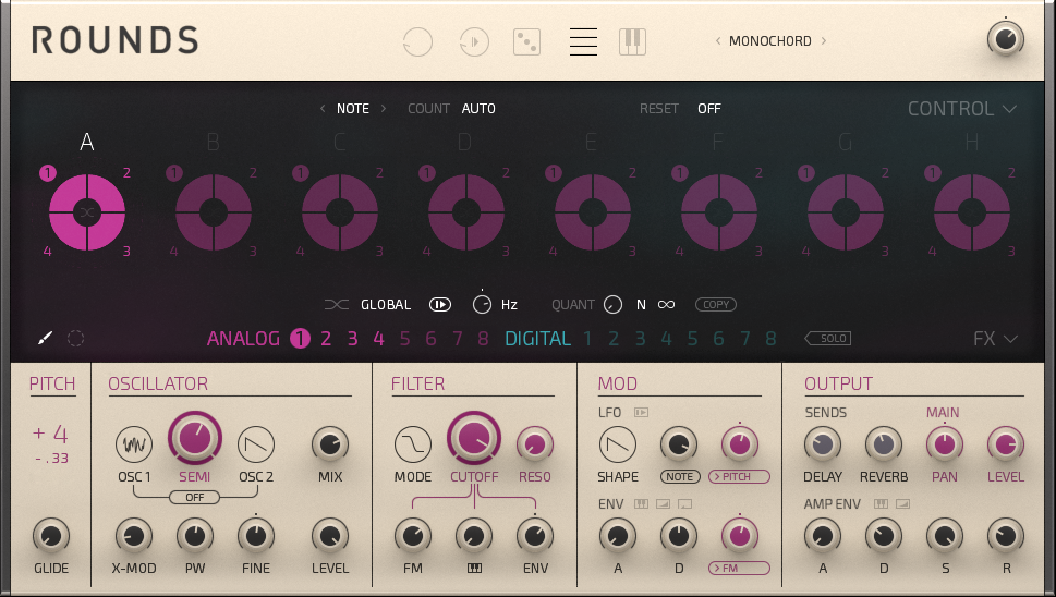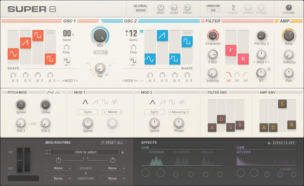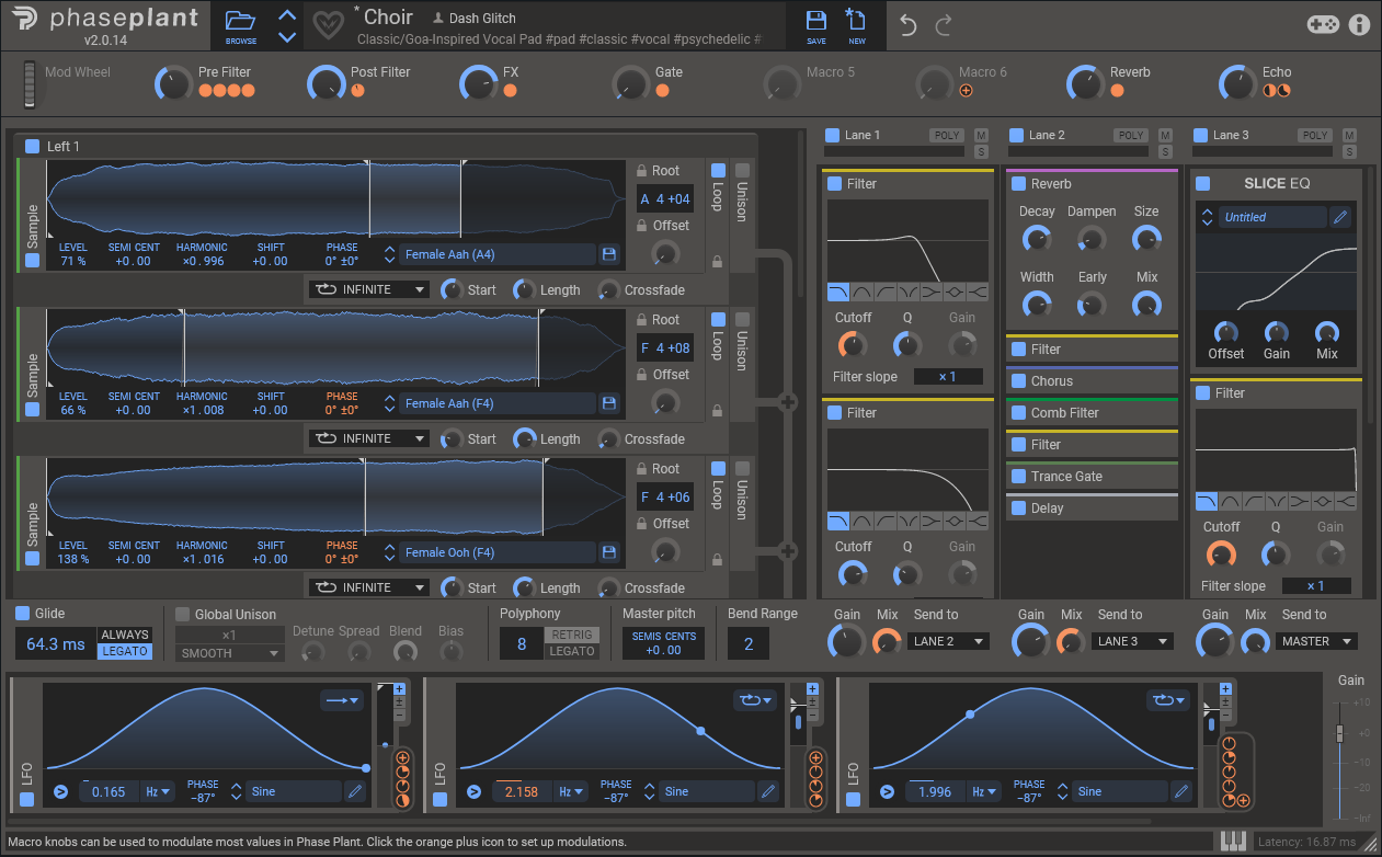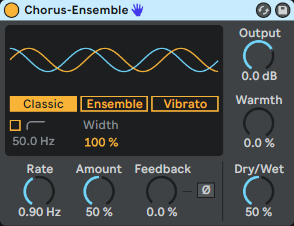 Like a chorus effect, Ensemble creates and plays back delayed copies of a sound to generate additional unison voices. But beyond this, it modulates the phase of each voice to avoid the metallic flanging of near-identical waves, which means a truly natural group sound from a single source.
