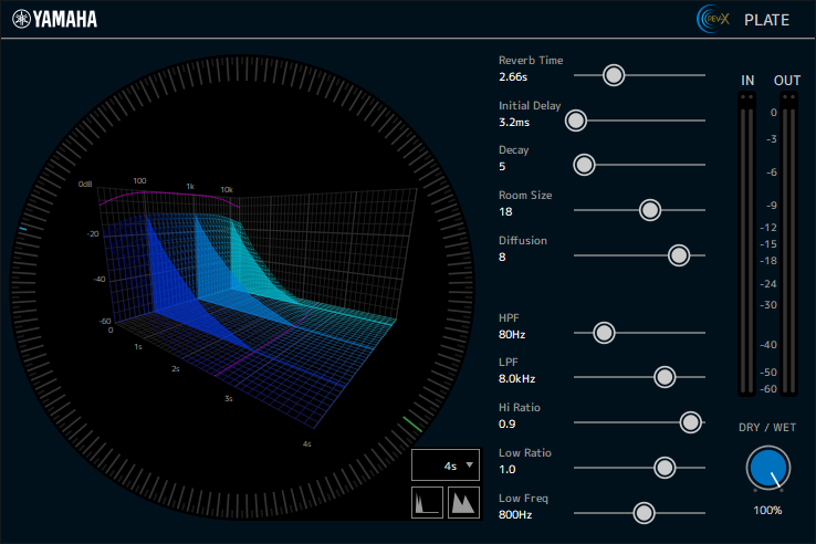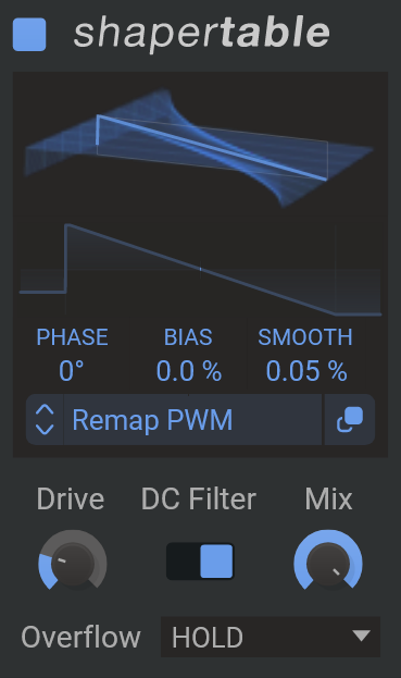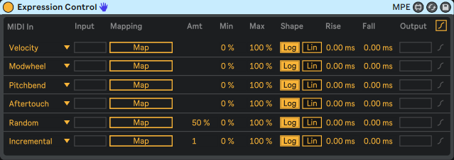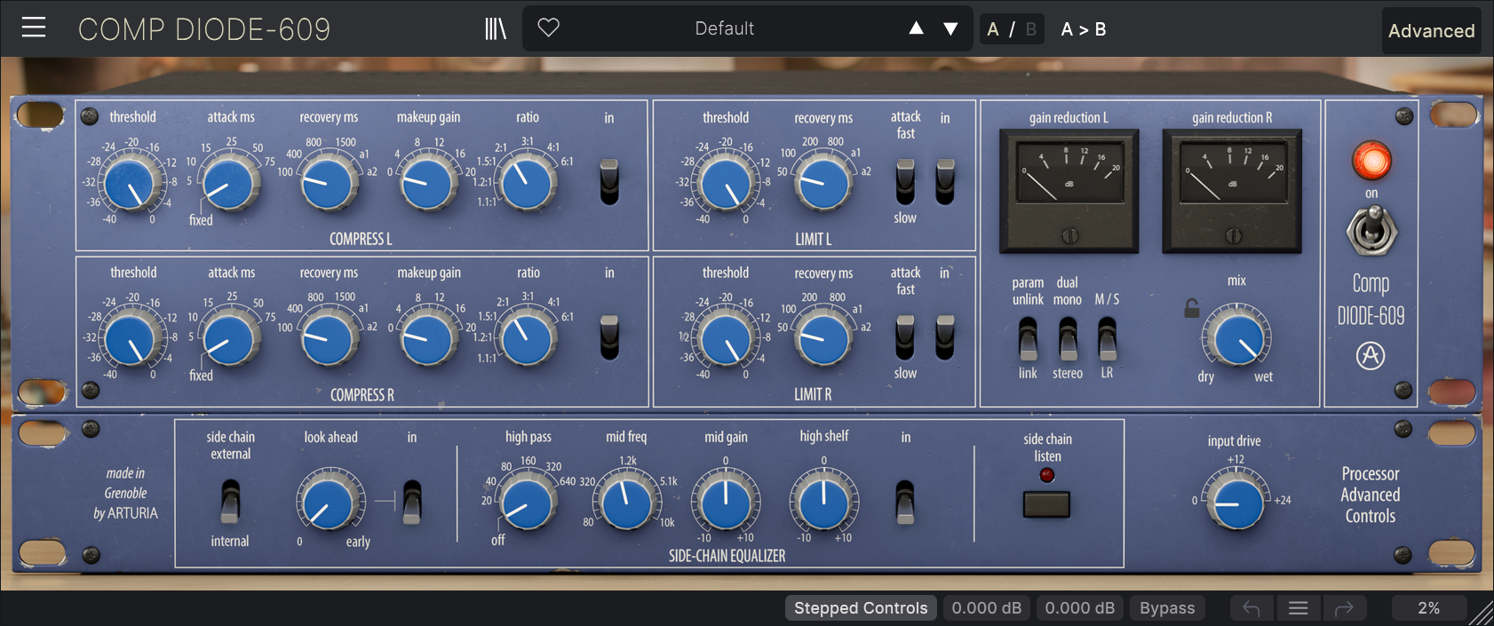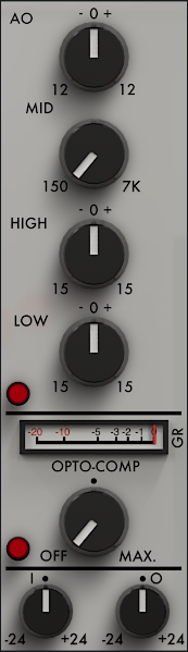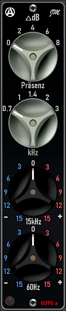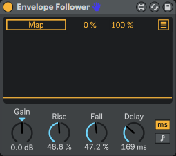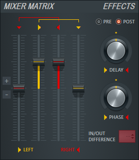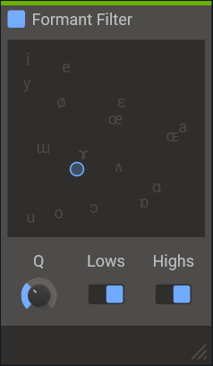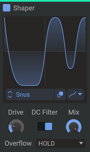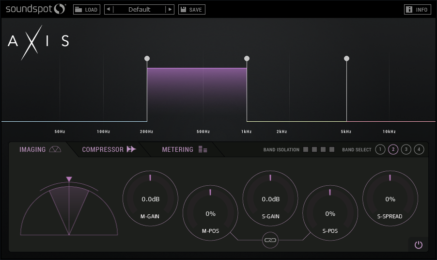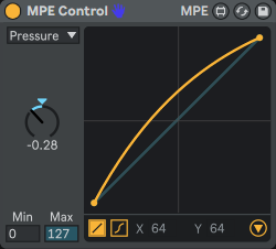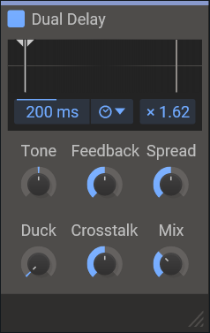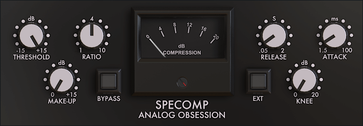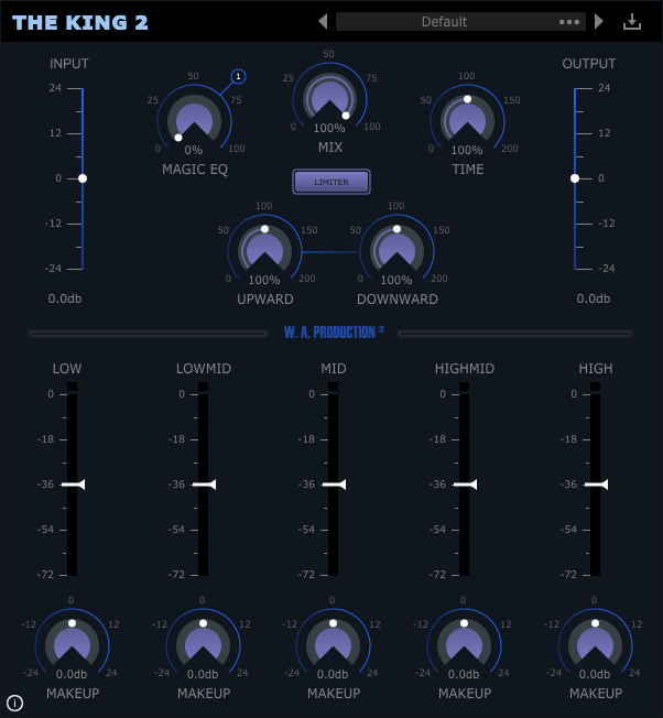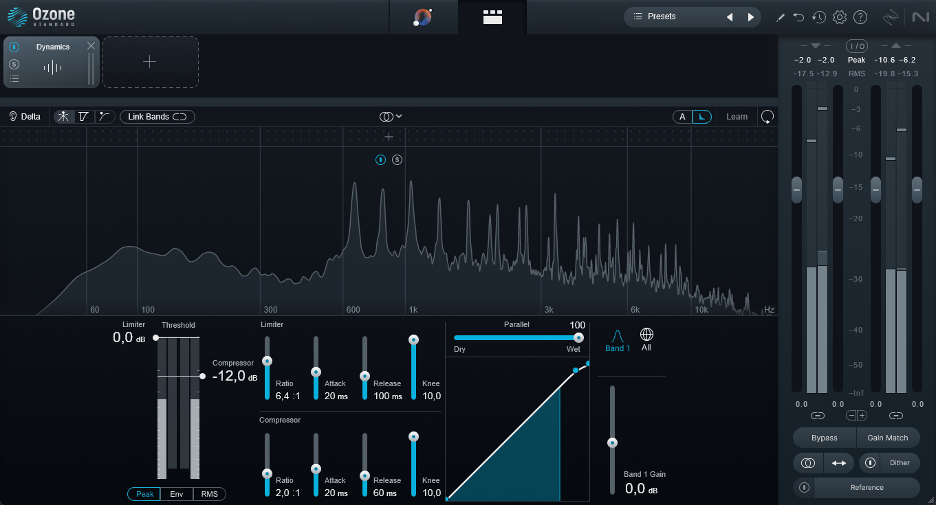 Dynamics processing featuring upward and downward compression as well as expansion. Thresholds and ratio are controlled by clicking and dragging on the visualization in the upper part of the plugin interface. The visualization shows how input levels are mapped to output levels by the dynamics processing. The current input and output levels are marked in the visualizer by a moving disc.