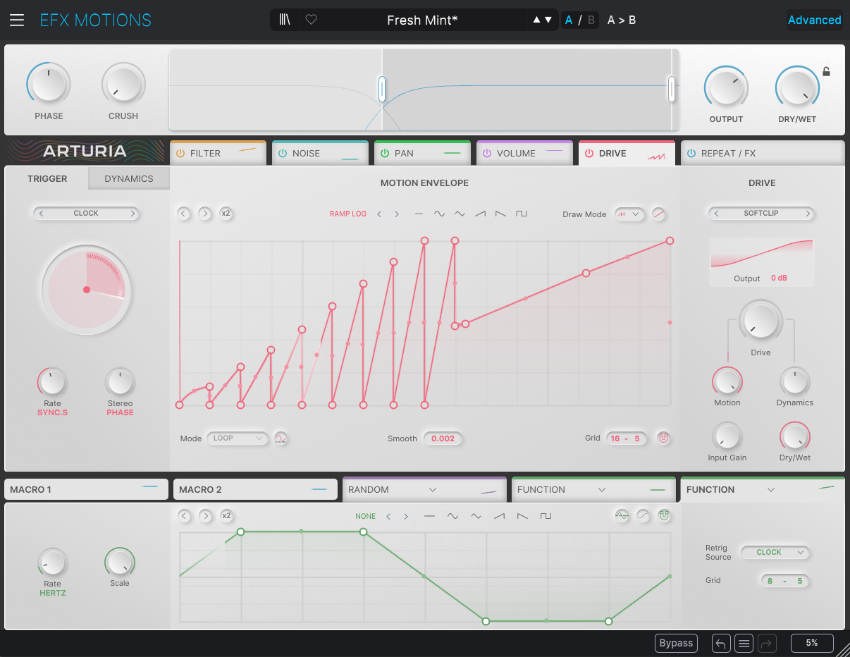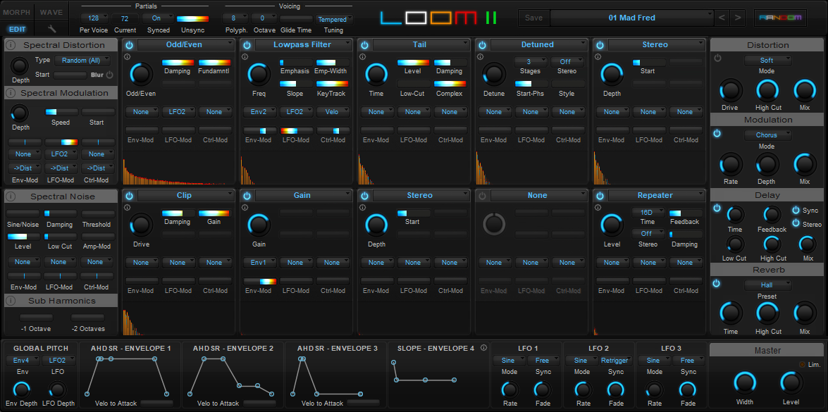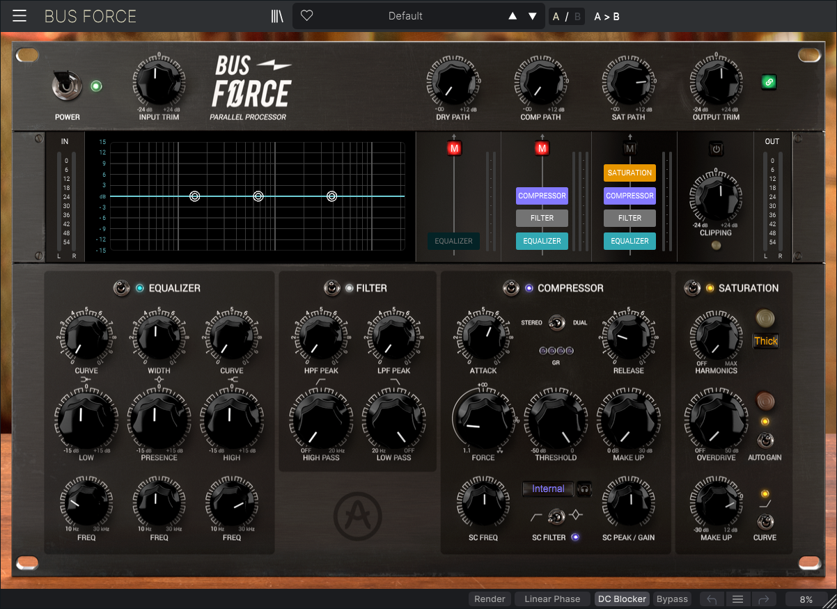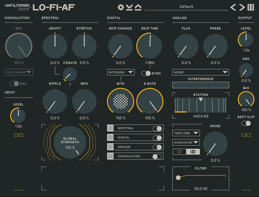 Faturator can do everything from adding subtle and warm gritty character to your sounds to slam them into a wall of heavy saturation and digital fuzz. Unlike many distortion effects, Faturator can preserve the dynamics of your sound and work its wonders on it regardless of input gain.