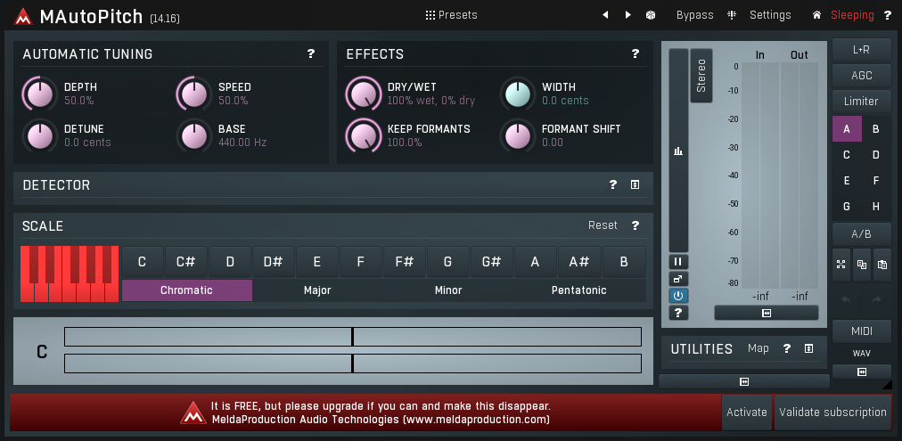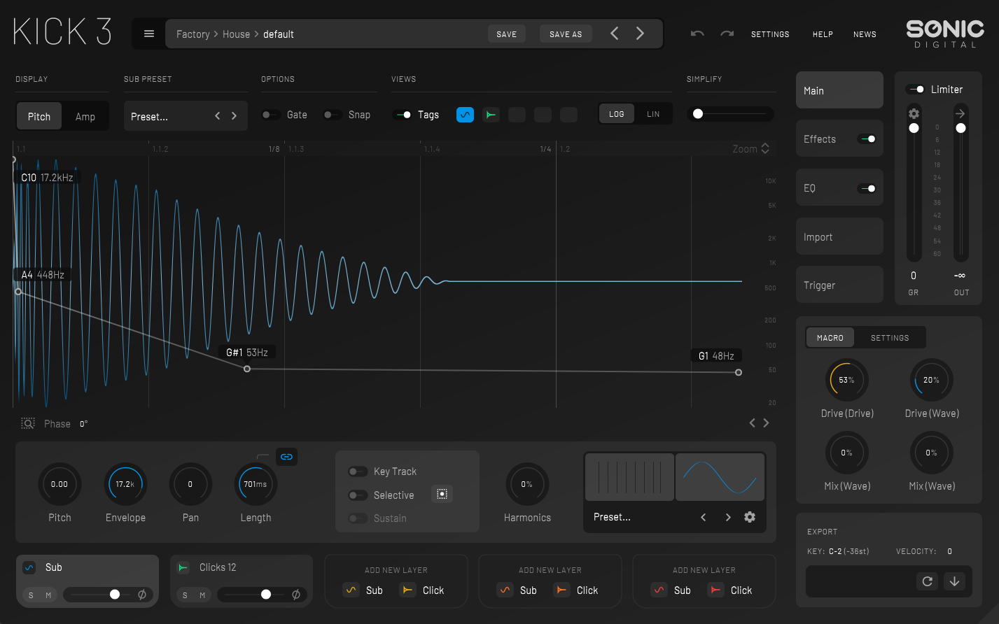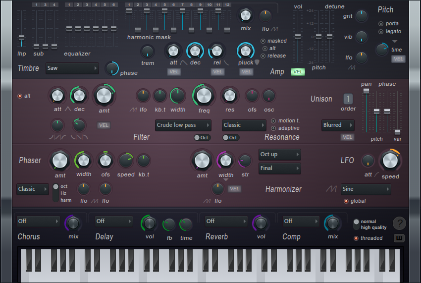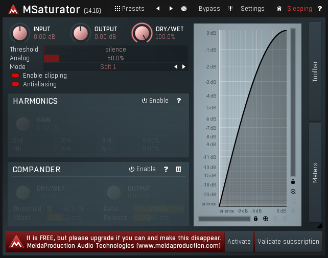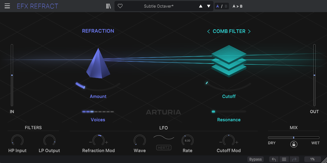 Faturator can do everything from adding subtle and warm gritty character to your sounds to slam them into a wall of heavy saturation and digital fuzz. Unlike many distortion effects, Faturator can preserve the dynamics of your sound and work its wonders on it regardless of input gain.