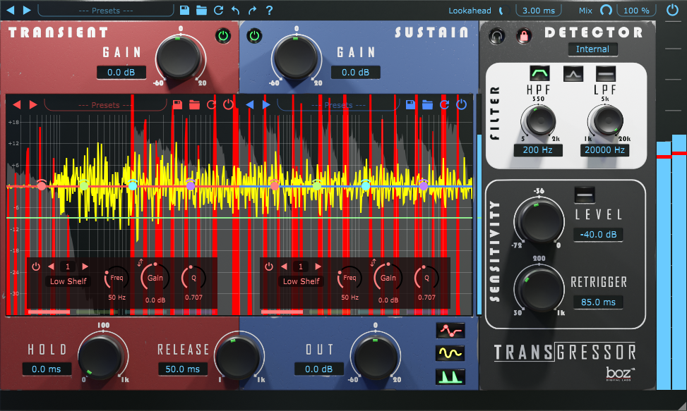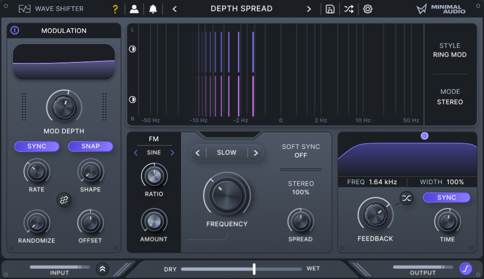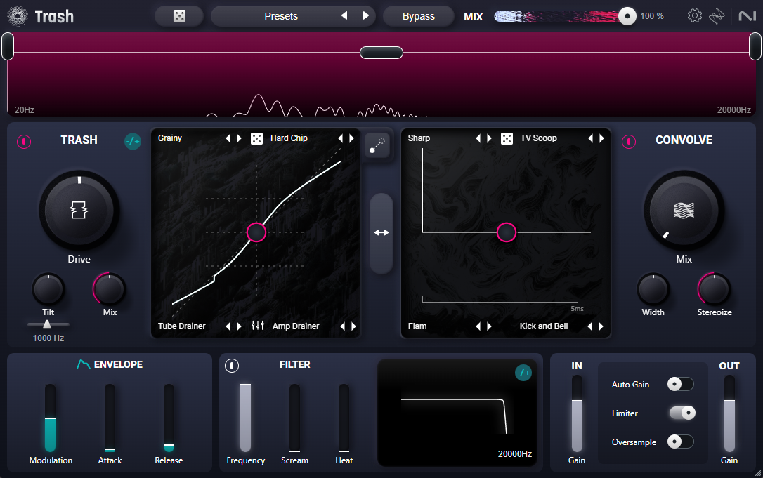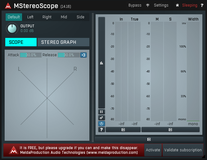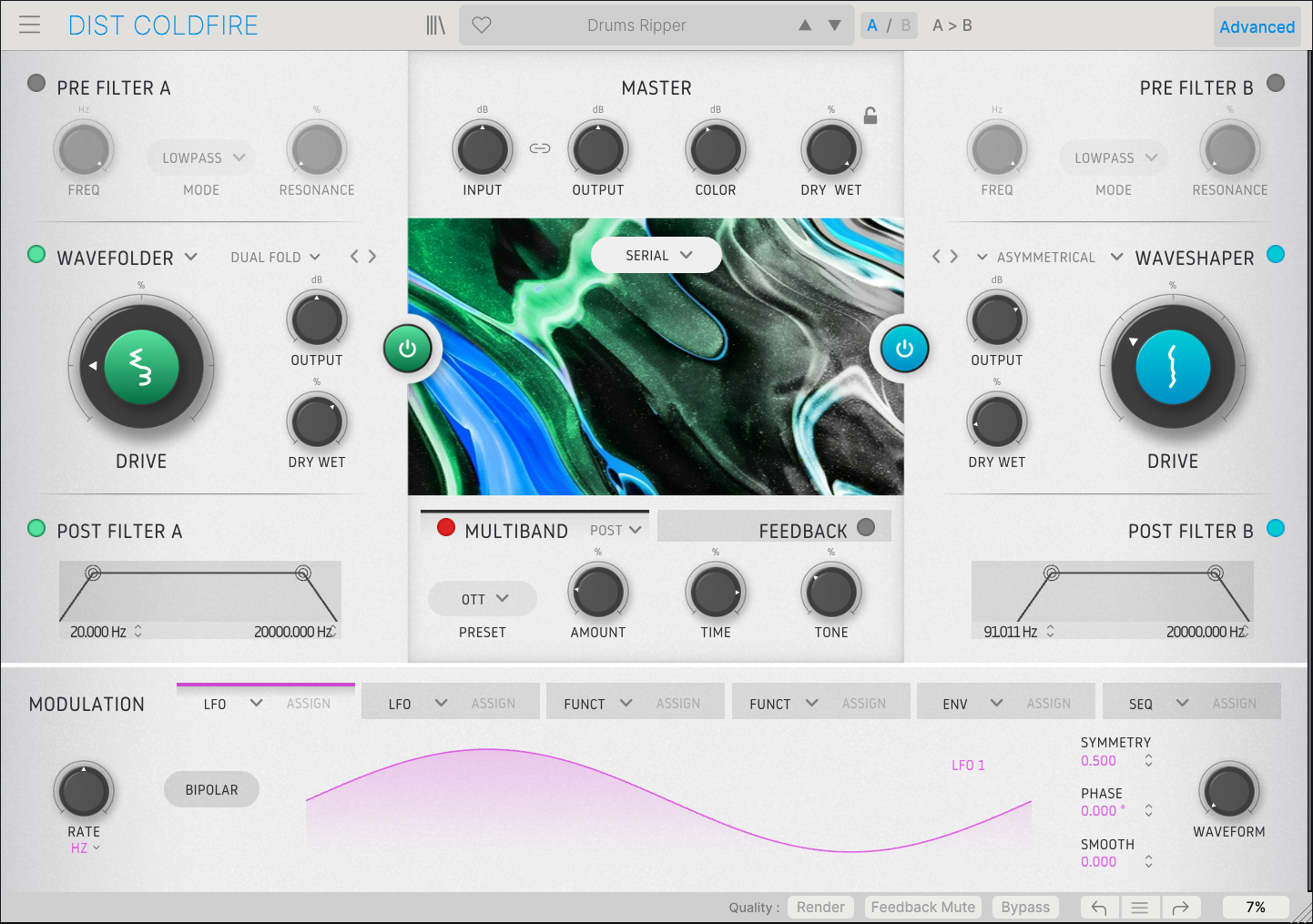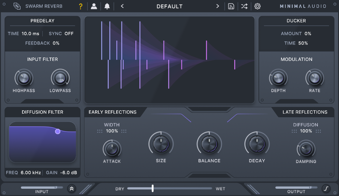 Disperser smears high energy transients through space and time without modifying the gain of the sound. The result is a different take on transient shaping or, when used at extreme settings, an effect capable of shaping the sounds in ways you didn’t know you wanted to do. Boomy kicks, snappy hihats, synthetic wet basses or just a sweet utility to shape your signal's peaks and crest factor. The choice is yours!