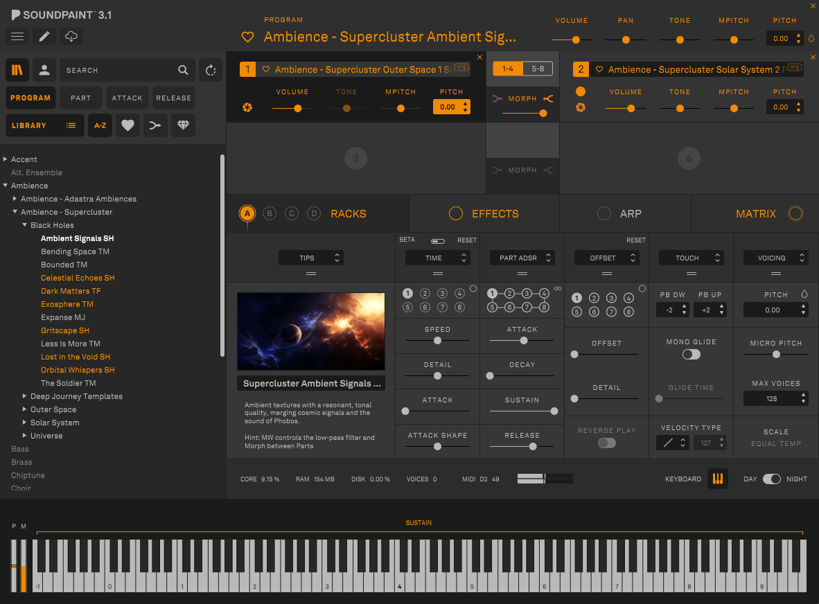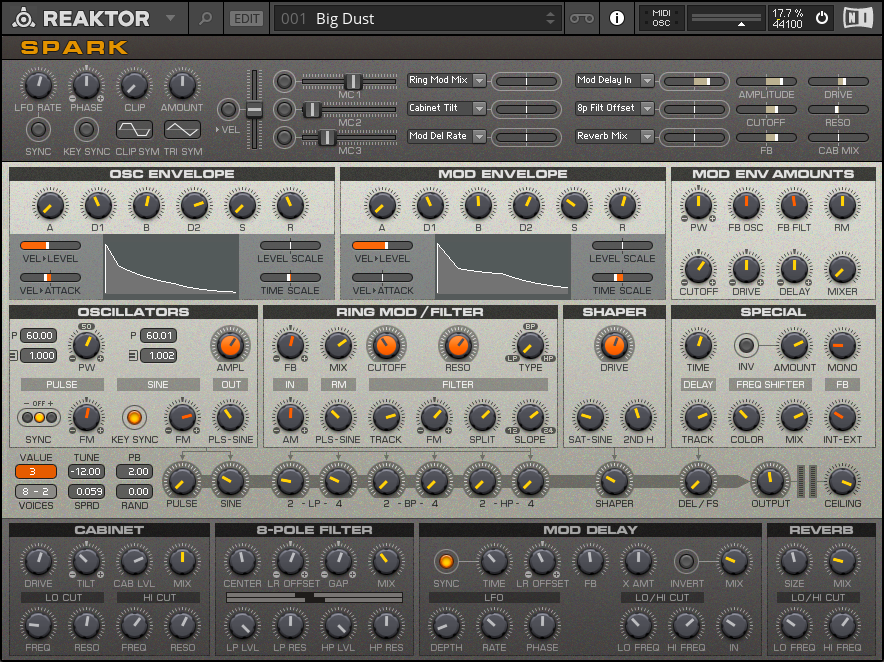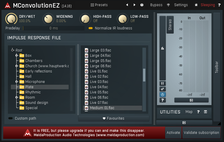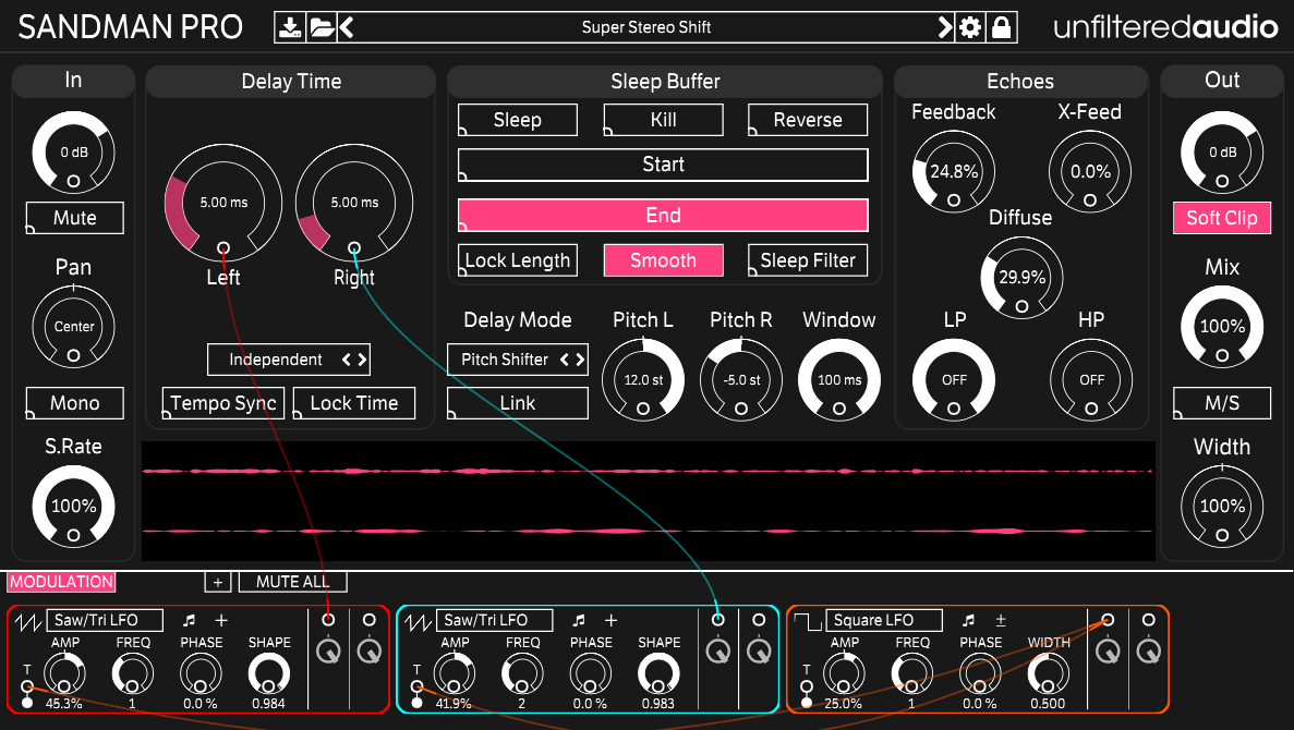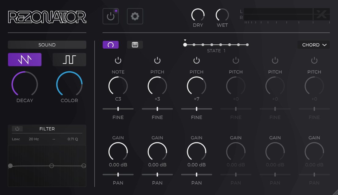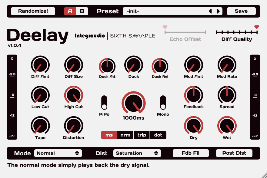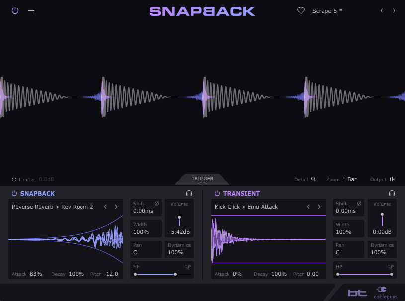Disperser smears high energy transients through space and time without modifying the gain of the sound. The result is a different take on transient shaping or, when used at extreme settings, an effect capable of shaping the sounds in ways you didn’t know you wanted to do. Boomy kicks, snappy hihats, synthetic wet basses or just a sweet utility to shape your signal's peaks and crest factor. The choice is yours!
