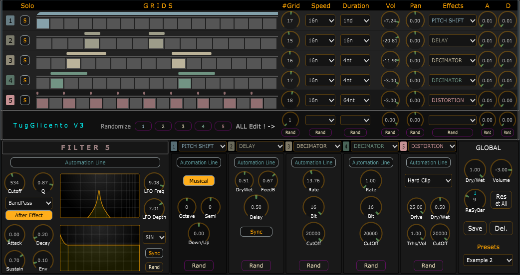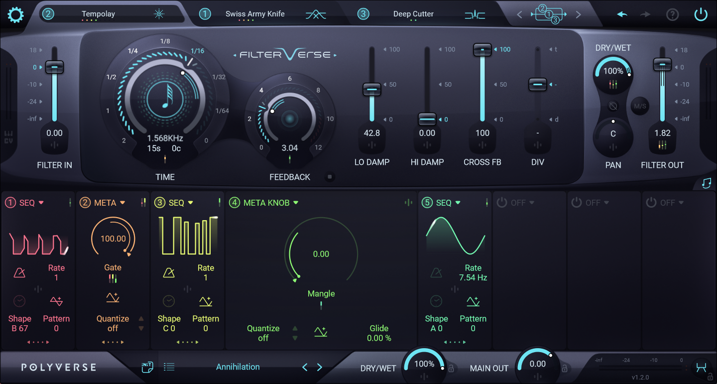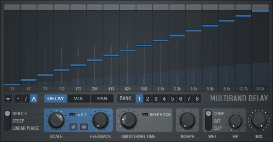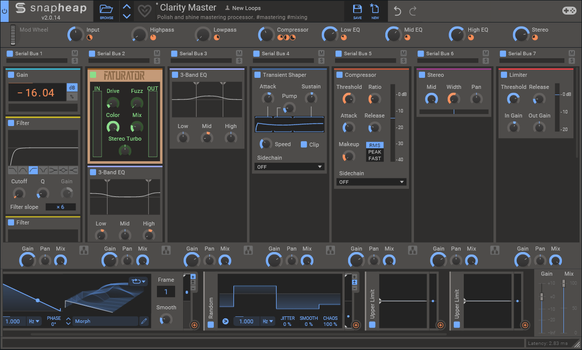 A truly modern parametric equalizer, Slice EQ cuts, or enhances, frequencies with surgical precision using razor sharp digital filters up to 96 dB/oct. Slice EQ is an advanced parametric equalizer, with great modulation potential. Especially when combined with Snap Heap
