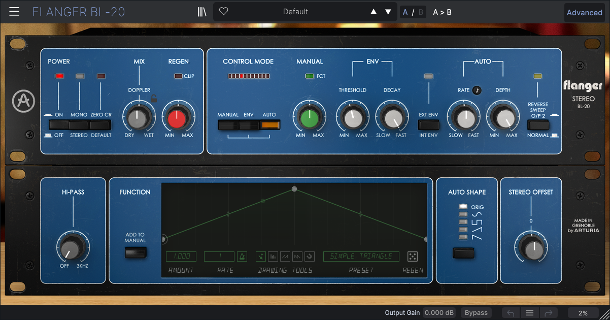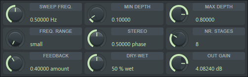 Flanger Creates a flanging effect by mixing the audio with a slightly delayed version of itself. The length of the delay can be adjusted manually and modulated. Optionally, this effect can also add a phase shift between the dry and wet signals to create an infinite barberpole-style flanging effect upwards or downwards.